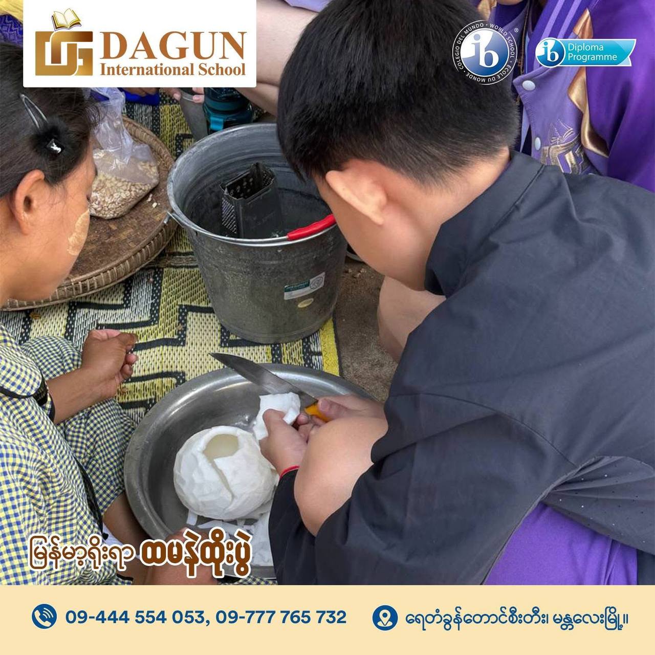 “DAGUN International School ၏ ကျောင်းသူ၊ကျောင်းသားများသည် မြန်မာ့ရိုးရာ တပို့တွဲလ၏ ဓလေ့တစ်ခုဖြစ်သော ထမနဲထိုးပွဲကို ရေတံခွန်တောင်ဂေါက်ကွင်း၌ တက်ကြွပျော်ရွှင်စွာဆင်နွှဲကြရင်း IB Learner Profile များဖြစ်သည့် အသင်းအဖွဲ့နှင့် ပူးပေါင်းဆောင်ရွက်ခြင်း၊ ရိုးရာဓလေ့ကို တန်ဖိုးထားခြင်း နှင့် အချင်းချင်းရိုင်းပင်းကူညီခြင်း တို့ကို လက်တွေ့ဖော်ဆောင်ကာ ပျော်ရွှင်စရာအမှတ်တရများ ဖန်တီးခဲ့ကြပါသည်။” 🥥🔥🥜