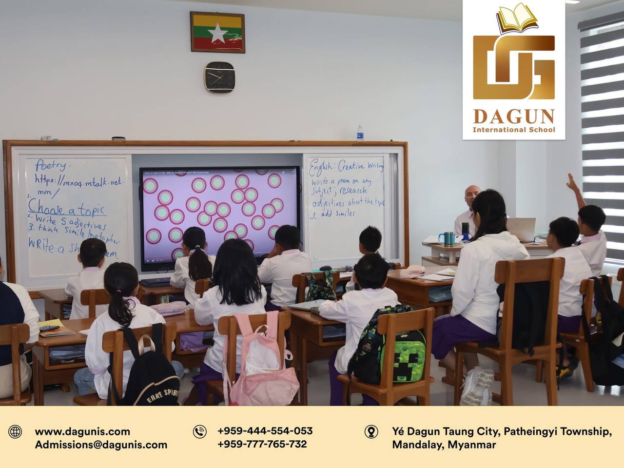 DAGUN International School Office, Ye' Dagun Taung City, Patheingyi Township, Mandalay, Myanmar.