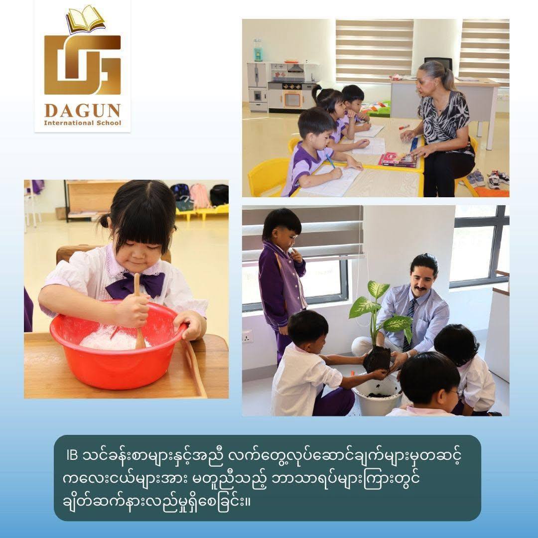 🟨 DAGUN International School ( An IB DP World School | MYP & PYP Candidate School ) သည် အသက်(၂) နှစ်မှ (၁၈) နှစ်အရွယ်ကလေးငယ်များအတွက် ဘက်စုံဖွံ့ဖြိုးတိုးတက်စေသော IB Curriculum ကို IBအတွေ့အကြုံရှိ English Native Speakerနိုင်ငံခြားသား Teacher များမှ ကျောင်းသူ၊ကျောင်းသားတစ်ဦးချင်းစီ၏ ဘက်စုံဖွံ့ဖြိုးမှုကိုအဓိကထား သင်ကြားပို့ချပေးလျက်ရှိပါသည်။